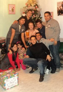 Oli kiva nähdä myös tuttuja, nimittäin Joulupukkikin kävi moikkaamassa. Ystäväni suku on huikean hauskaa sakkia, siinä porukassa muuten huuli lentää! Ja ystäväni serkut olivat kyllä oma lukunsa. Nuoremmat versiot varastivat aluksi huomioni ja latoivat pöytään semmoisen määrän kysymyksiä, että meinasi hengästyttää. Hirveän suloisiahan he olivat, kuten myös dalmatiankoira nimeltä drinkki (perhe omistaa viinakaupan). Puoliltaöin kaikki juoksivat pikaisesti yläkerran parvekkeelle katsomaan ja ampumaan ilotulitteita. Minulla soivat sisäänrakennetut hälytyskellot: ”Missä kaikkien suojalasit? Miksi kaikki ampuu ilotulitteita käsistään?? Okei, se on menoa nyt, kohta olen sokea.” Niin, ja mitäpä olisivat ilotulitteet, jotka eivät saa autojen varashälyttimiä soimaan? Aikamoinen hälinä ja melu oli kyllä, ei tietoakaan suomalaisesta joulurauhasta! Mutta no, olihan se nyt vaan todella hauskaa ja kaunista katseltavaa. Samalla kaikki tietysti toivottelivat toisilleen hyvää joulua.